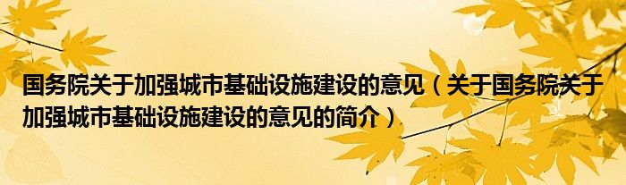 本文關(guān)于國務(wù)院關(guān)于加強(qiáng)城市基礎(chǔ)設(shè)施建設(shè)的意見的簡介就講解完畢,希望對大家有所幫助。