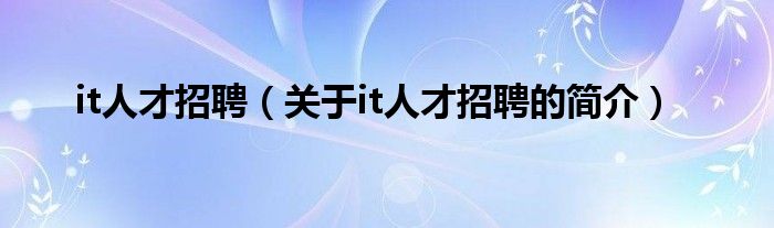 本文關于it人才招聘的簡介就講解完畢,希望對大家有所幫助。