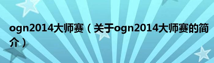大家好,ogn2014大師賽,關于ogn2014大師賽的簡介很多人還不知道,現在讓我們一起來看看吧!
