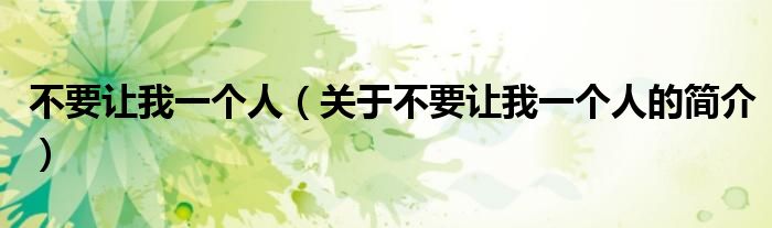 本文關于不要讓我一個人的簡介就講解完畢,希望對大家有所幫助。