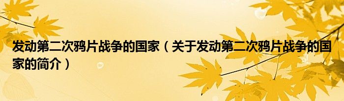 本文關于發動第二次鴉片戰爭的國家的簡介就講解完畢,希望對大家有所幫助。