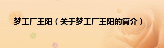 大家好,夢工廠王陽,關于夢工廠王陽的簡介很多人還不知道,現在讓我們一起來看看吧!
