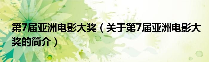本文關于第7屆亞洲電影大獎的簡介就講解完畢,希望對大家有所幫助。