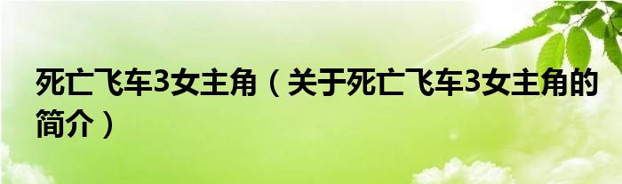 本文關于死亡飛車3女主角的簡介就講解完畢,希望對大家有所幫助。