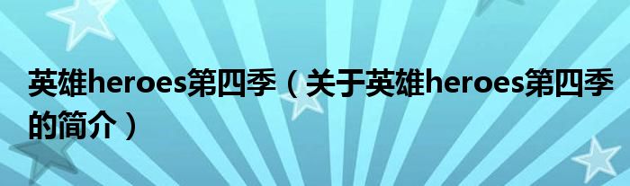 大家好,英雄heroes第四季,關于英雄heroes第四季的簡介很多人還不知道,現在讓我們一起來看看吧!