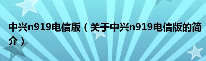 本文關于中興n919電信版的簡介就講解完畢,希望對大家有所幫助。
