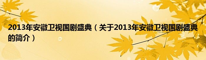 本文關于2013年安徽衛視國劇盛典的簡介就講解完畢,希望對大家有所幫助。