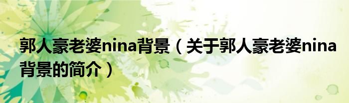 本文關于郭人豪老婆nina背景的簡介就講解完畢,希望對大家有所幫助。
