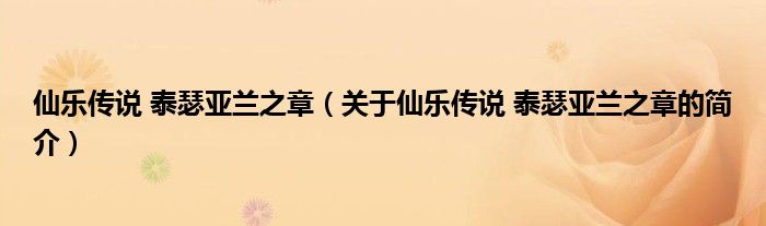 本文關于仙樂傳說 泰瑟亞蘭之章的簡介就講解完畢,希望對大家有所幫助。
