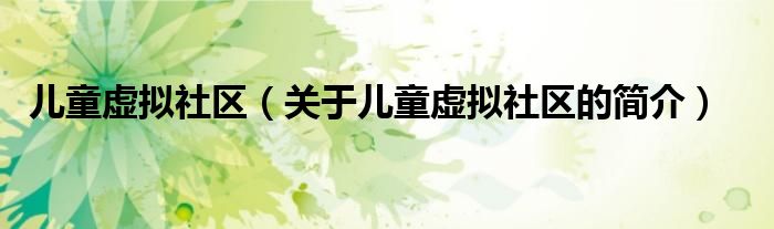 本文關(guān)于兒童虛擬社區(qū)的簡介就講解完畢,希望對大家有所幫助。