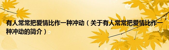 大家好,有人常常把愛情比作一種沖動,關于有人常常把愛情比作一種沖動的簡介很多人還不知道,現在讓我們一起來看看吧!