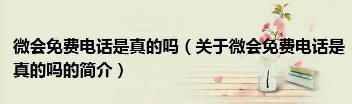 本文關于微會免費電話是真的嗎的簡介就講解完畢,希望對大家有所幫助。