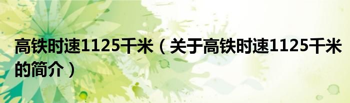 本文關于高鐵時速1125千米的簡介就講解完畢,希望對大家有所幫助。