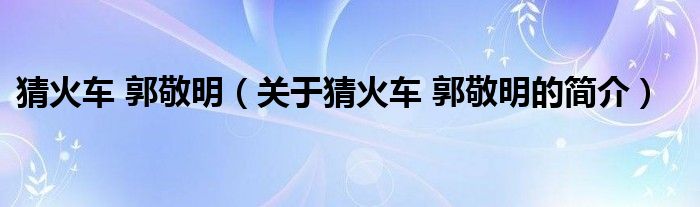 本文關于猜火車 郭敬明的簡介就講解完畢,希望對大家有所幫助。