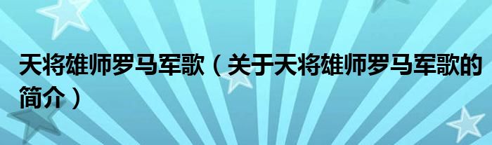 本文關于天將雄師羅馬軍歌的簡介就講解完畢,希望對大家有所幫助。