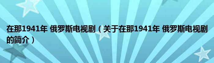本文關(guān)于在那1941年 俄羅斯電視劇的簡介就講解完畢,希望對大家有所幫助。