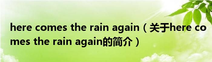 本文關(guān)于here comes the rain again的簡(jiǎn)介就講解完畢,希望對(duì)大家有所幫助。