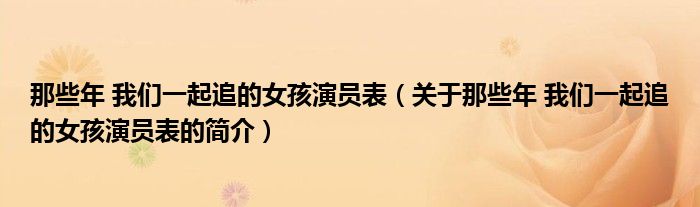 本文關于那些年 我們一起追的女孩演員表的簡介就講解完畢,希望對大家有所幫助。
