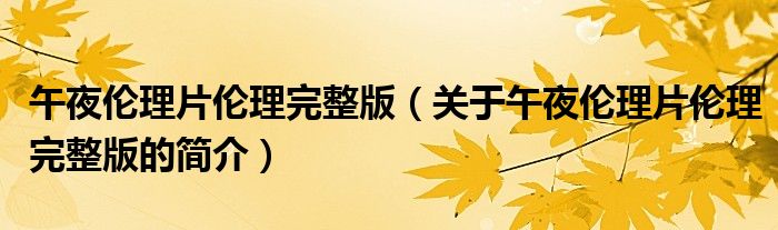 本文關于午夜倫理片倫理完整版的簡介就講解完畢,希望對大家有所幫助。