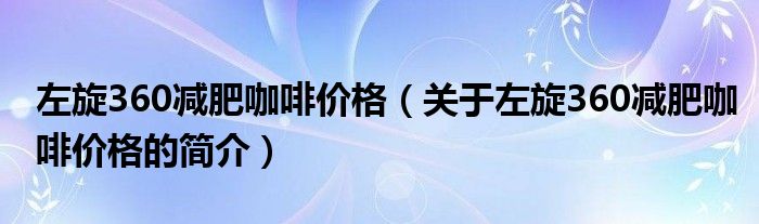 本文關(guān)于左旋360減肥咖啡價(jià)格的簡(jiǎn)介就講解完畢,希望對(duì)大家有所幫助。