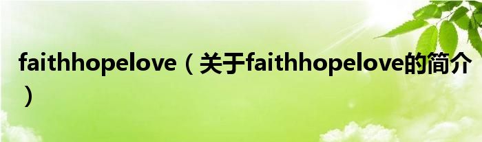 本文關于faithhopelove的簡介就講解完畢,希望對大家有所幫助。