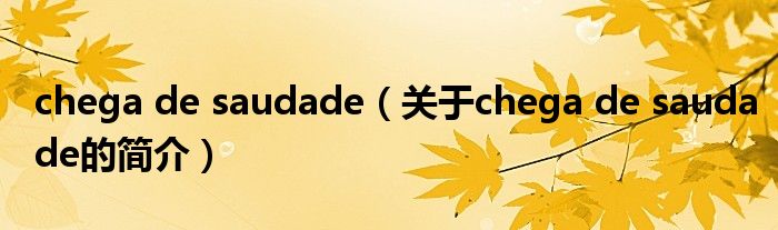 大家好,chega de saudade,關(guān)于chega de saudade的簡介很多人還不知道,現(xiàn)在讓我們一起來看看吧!