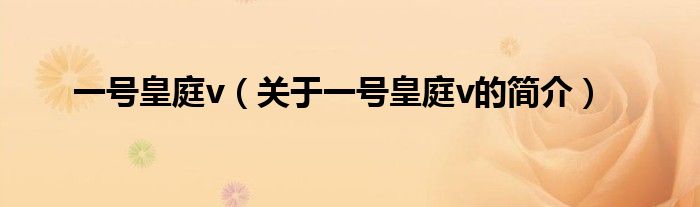 大家好,一號皇庭v,關于一號皇庭v的簡介很多人還不知道,現在讓我們一起來看看吧!