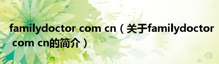 本文關(guān)于familydoctor com cn的簡介就講解完畢,希望對大家有所幫助。
