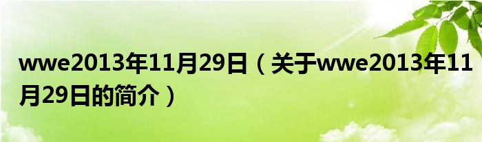 本文關于wwe2013年11月29日的簡介就講解完畢,希望對大家有所幫助。