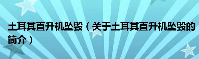 本文關于土耳其直升機墜毀的簡介就講解完畢,希望對大家有所幫助。