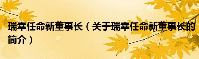 大家好,瑞幸任命新董事長,關(guān)于瑞幸任命新董事長的簡介很多人還不知道,現(xiàn)在讓我們一起來看看吧!