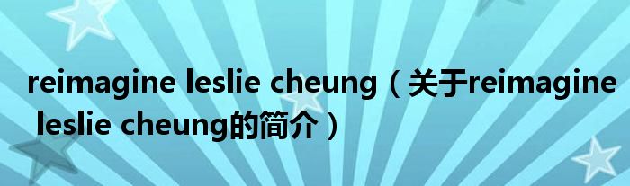 大家好,reimagine leslie cheung,關于reimagine leslie cheung的簡介很多人還不知道,現在讓我們一起來看看吧!