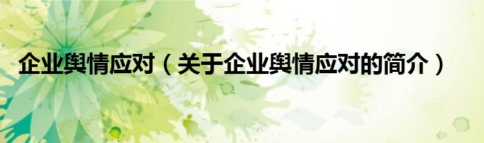 本文關(guān)于企業(yè)輿情應(yīng)對(duì)的簡(jiǎn)介就講解完畢,希望對(duì)大家有所幫助。
