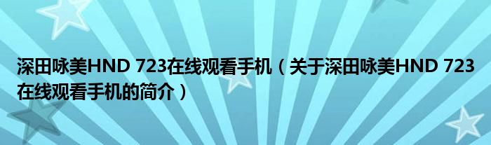 本文關于深田詠美HND 723在線觀看手機的簡介就講解完畢,希望對大家有所幫助。