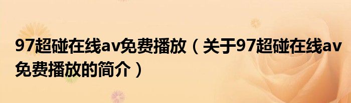 大家好,97超碰在線av免費播放,關于97超碰在線av免費播放的簡介很多人還不知道,現在讓我們一起來看看吧!