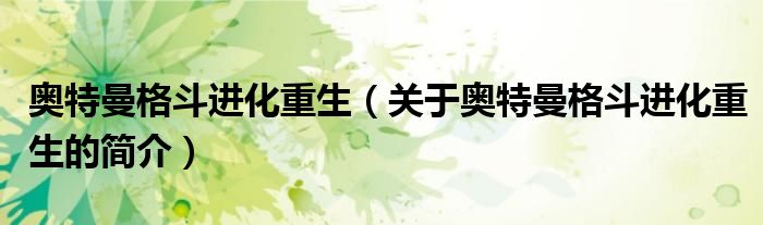 本文關于奧特曼格斗進化重生的簡介就講解完畢,希望對大家有所幫助。