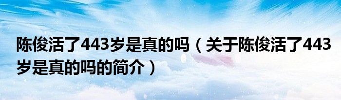 本文關于陳俊活了443歲是真的嗎的簡介就講解完畢,希望對大家有所幫助。
