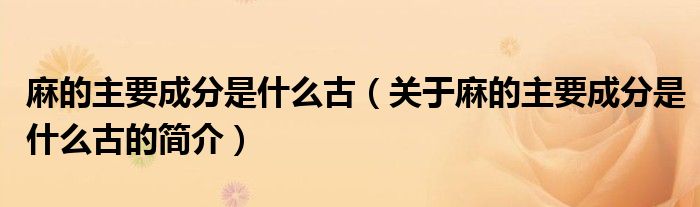 本文關于麻的主要成分是什么古的簡介就講解完畢,希望對大家有所幫助。