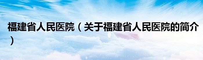 本文關于福建省人民醫院的簡介就講解完畢,希望對大家有所幫助。
