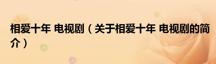 本文關于相愛十年 電視劇的簡介就講解完畢,希望對大家有所幫助。