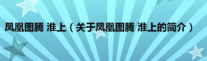 本文關于鳳凰圖騰 淮上的簡介就講解完畢,希望對大家有所幫助。