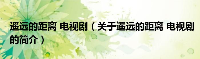 大家好,遙遠的距離 電視劇,關于遙遠的距離 電視劇的簡介很多人還不知道,現在讓我們一起來看看吧!