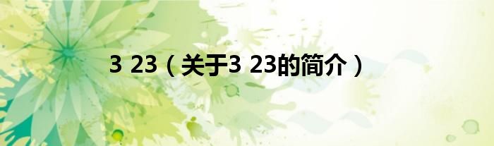 本文關于3 23的簡介就講解完畢,希望對大家有所幫助。