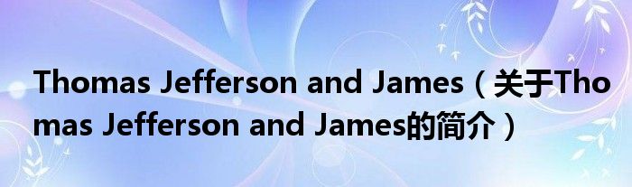 大家好,Thomas Jefferson and James,關于Thomas Jefferson and James的簡介很多人還不知道,現在讓我們一起來看看吧!