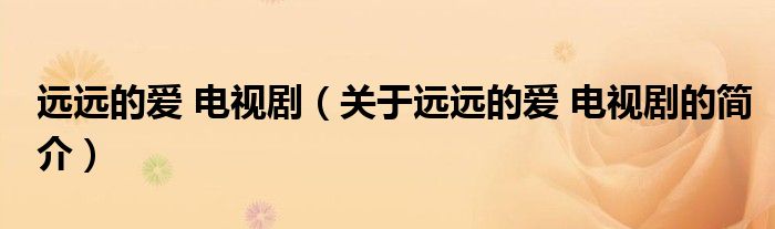本文關于遠遠的愛 電視劇的簡介就講解完畢,希望對大家有所幫助。
