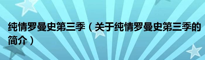 大家好,純情羅曼史第三季,關(guān)于純情羅曼史第三季的簡介很多人還不知道,現(xiàn)在讓我們一起來看看吧!