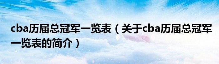 本文關于cba歷屆總冠軍一覽表的簡介就講解完畢,希望對大家有所幫助。