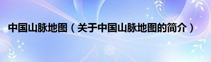 本文關于中國山脈地圖的簡介就講解完畢,希望對大家有所幫助。