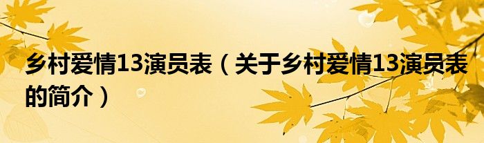 本文關于鄉村愛情13演員表的簡介就講解完畢,希望對大家有所幫助。