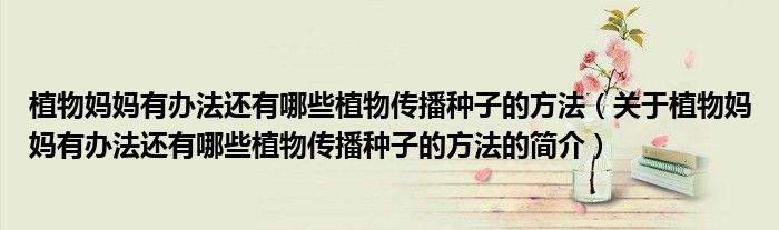 本文關于植物媽媽有辦法還有哪些植物傳播種子的方法的簡介就講解完畢,希望對大家有所幫助。